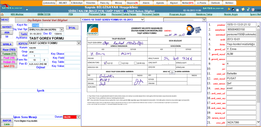 dijital olarak tasarlanmış veri formları elle doldurulmakta ve otomasyona yeniden taranmadan, bilgi girişi yapılmadan entegre edilmektedir.