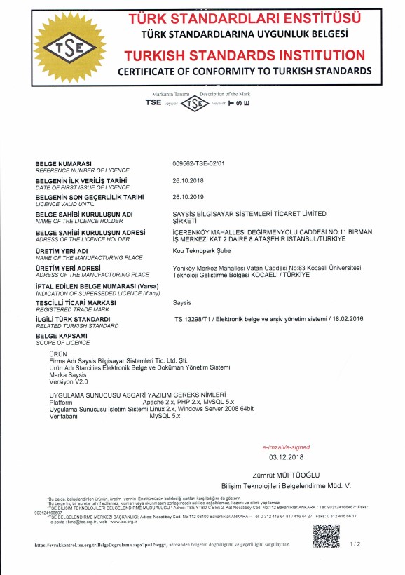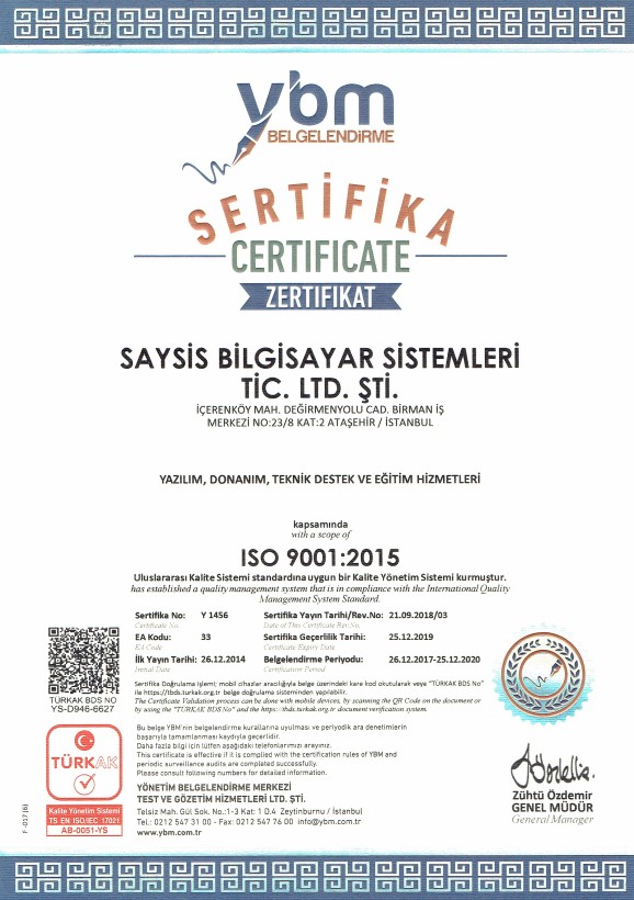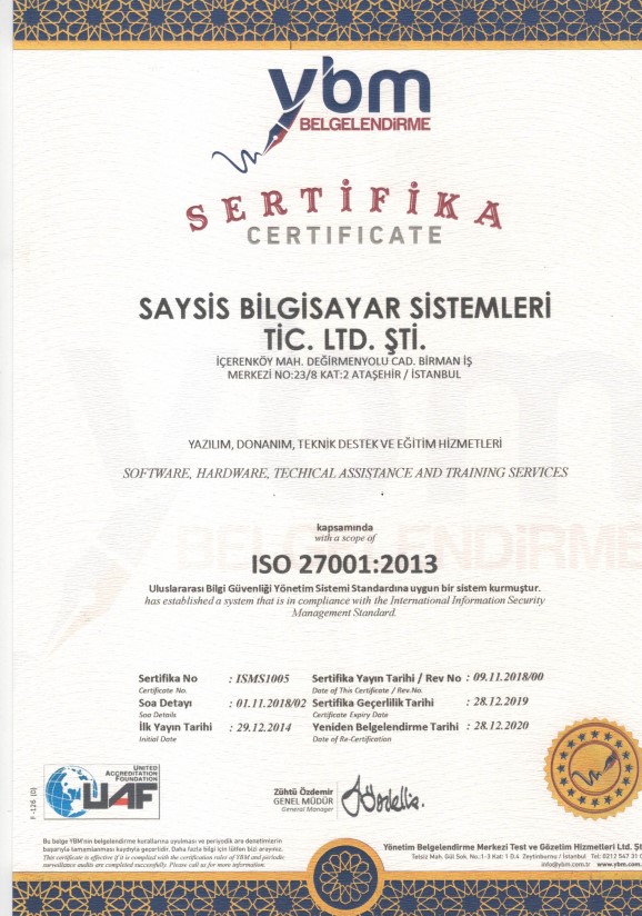 Firmamızın ve yazılımlarımızın sahip olduğu sertifika ve belgeler